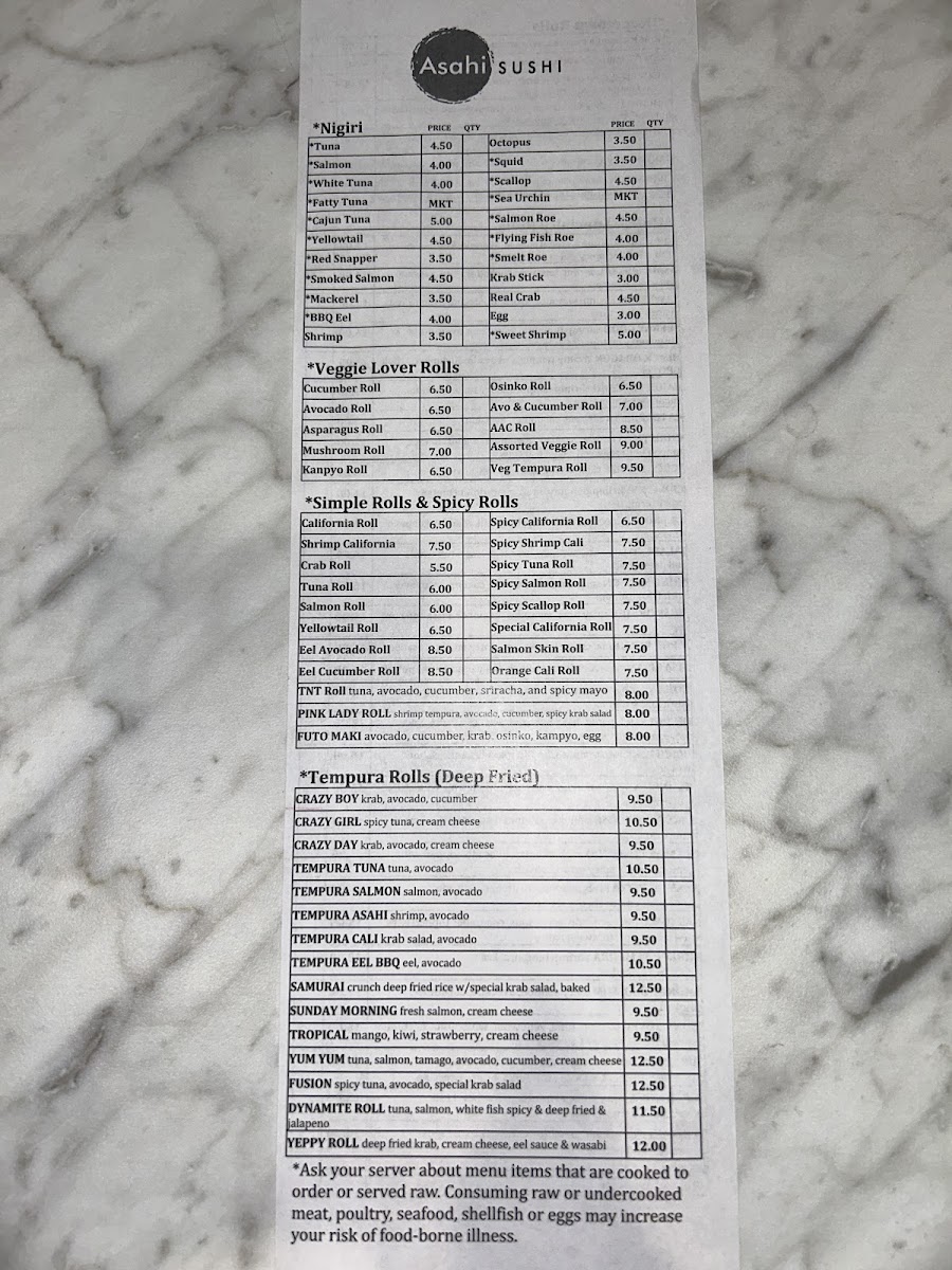 Asahi Sushi Menu brings a relaxed mix of familiar rolls and unexpected flavors that make dining feel easygoing and fun. Tucked along 55220 Van Dyke Ave in Shelby Township, this spot offers a variety of sushi that ranges from simple, clean bites to bold, saucy combinations. You might start with classics like tuna or salmon nigiri, then drift toward rainbow or dragon rolls layered with color and crunch. Each plate arriving at the table feels like an invitation to try one more piece.